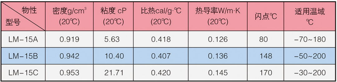 LM-15系列冰河冷媒由聚硅氧烷改性而成。外觀為無色或淺色液體,不溶于水。具有生理惰性、良好的化學(xué)穩(wěn)定性、凝固點(diǎn)低、使用壽命長等特點(diǎn),對(duì)以金屬為代表的眾多材料,幾乎不會(huì)產(chǎn)生不良的影響,可應(yīng)用于醫(yī)藥、化工、新能源等領(lǐng)域的制冷系統(tǒng)。